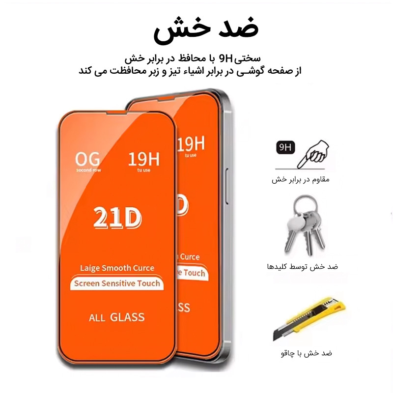 نصب آسان بدون حباب پوشش کامل صفحه شفافیت بالا ضد خط وخش مقاومت در برابر ضربه حفظ حساسیت لمس لبههای منحنی و دقیق ضخامت استاندارد طول عمر بالا حفظ کیفیت تصویر