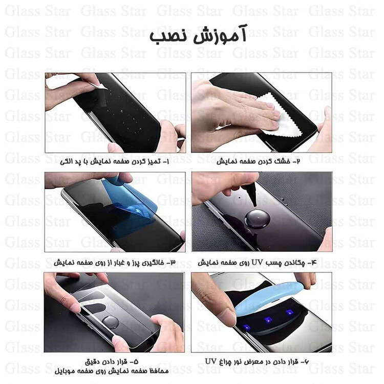 مشخصات دیگر: -دارای مایع مخصوص نصب، اشعه ی فیکس کننده چسب -چسبیدن محکم لبه ها -نصب بدون حباب -عدم کاهش کیفیت صفحه نمایش -عدم کاهش کیفیت تاچ - بسته بندی شکیل